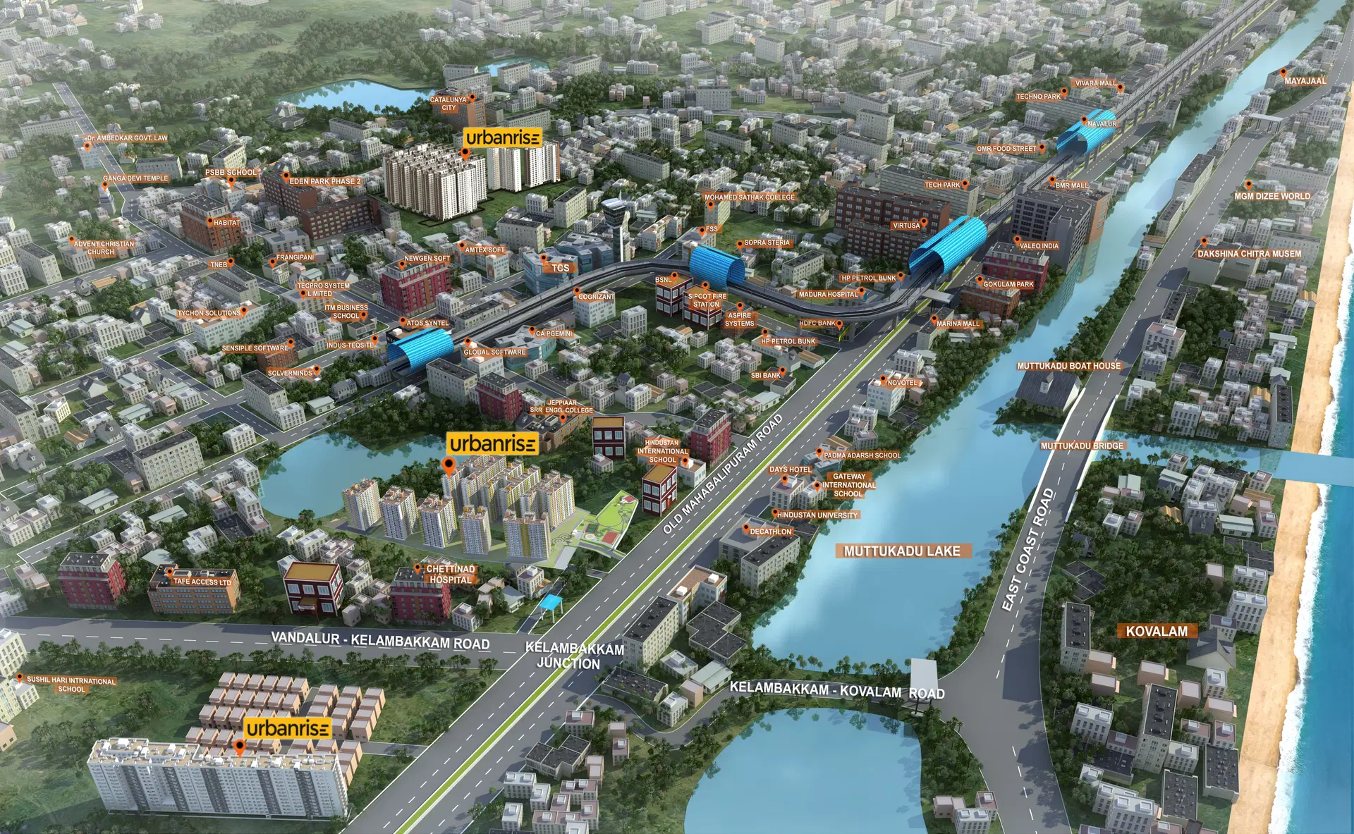 Discover modern living redefined at Urbanrise World of Joy, located in Chennai's thriving OMR corridor. Strategically set near South India’s largest IT Corridor at SIPCOT IT Park in Siruseri and OMR and close vicinity to serene 3,500-acre Karanai Reserve Forest, this premium gated community offers IGBC-Gold certified 3BHK apartments.